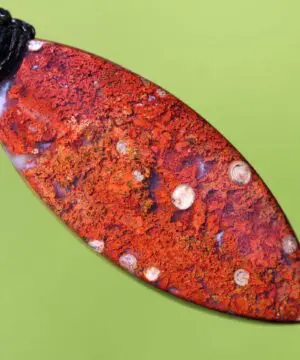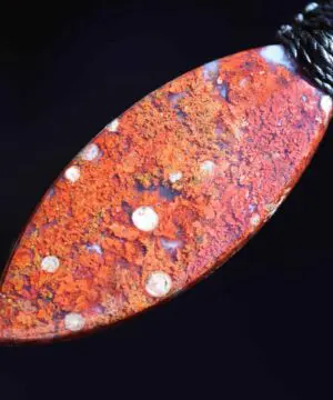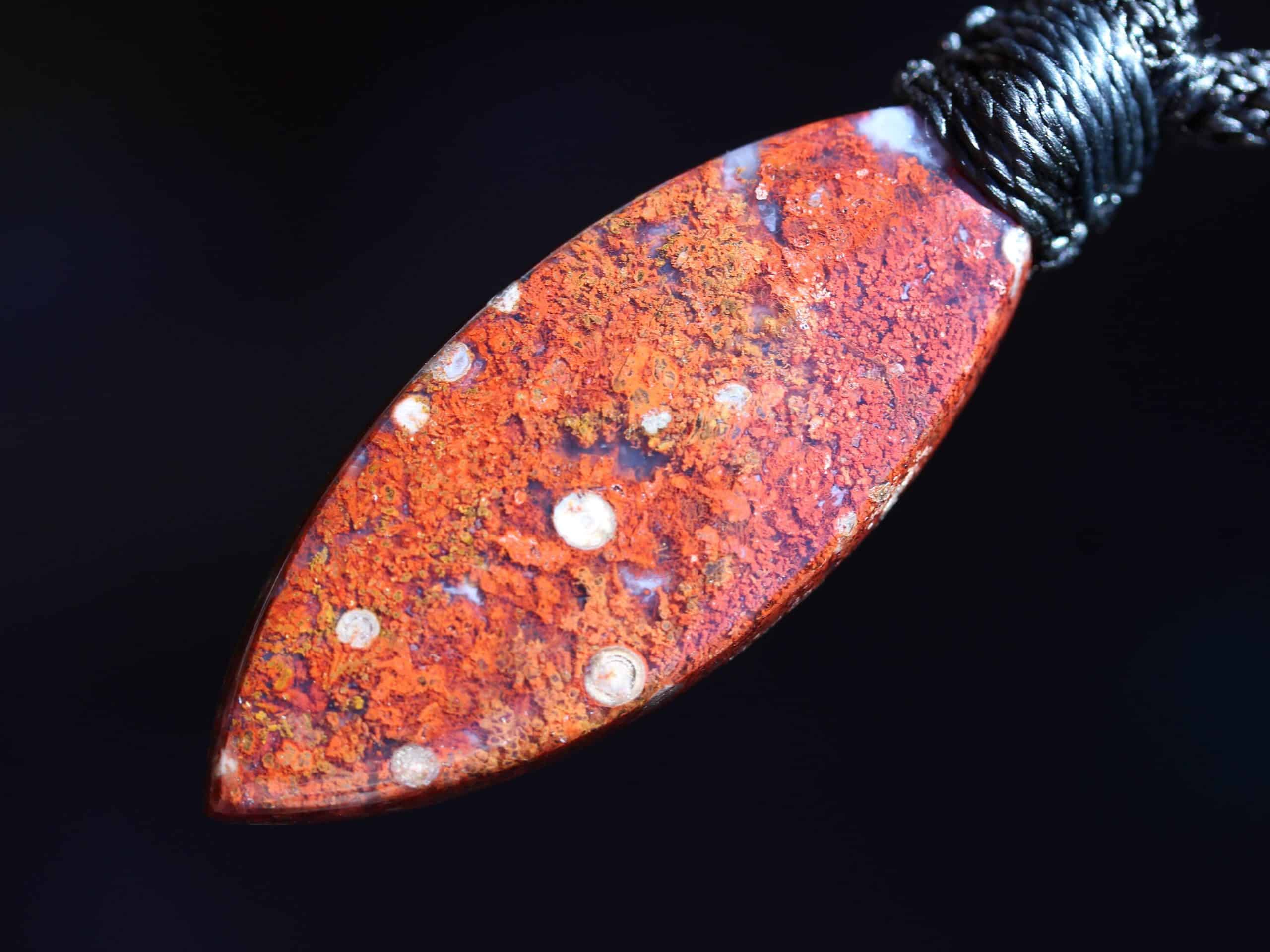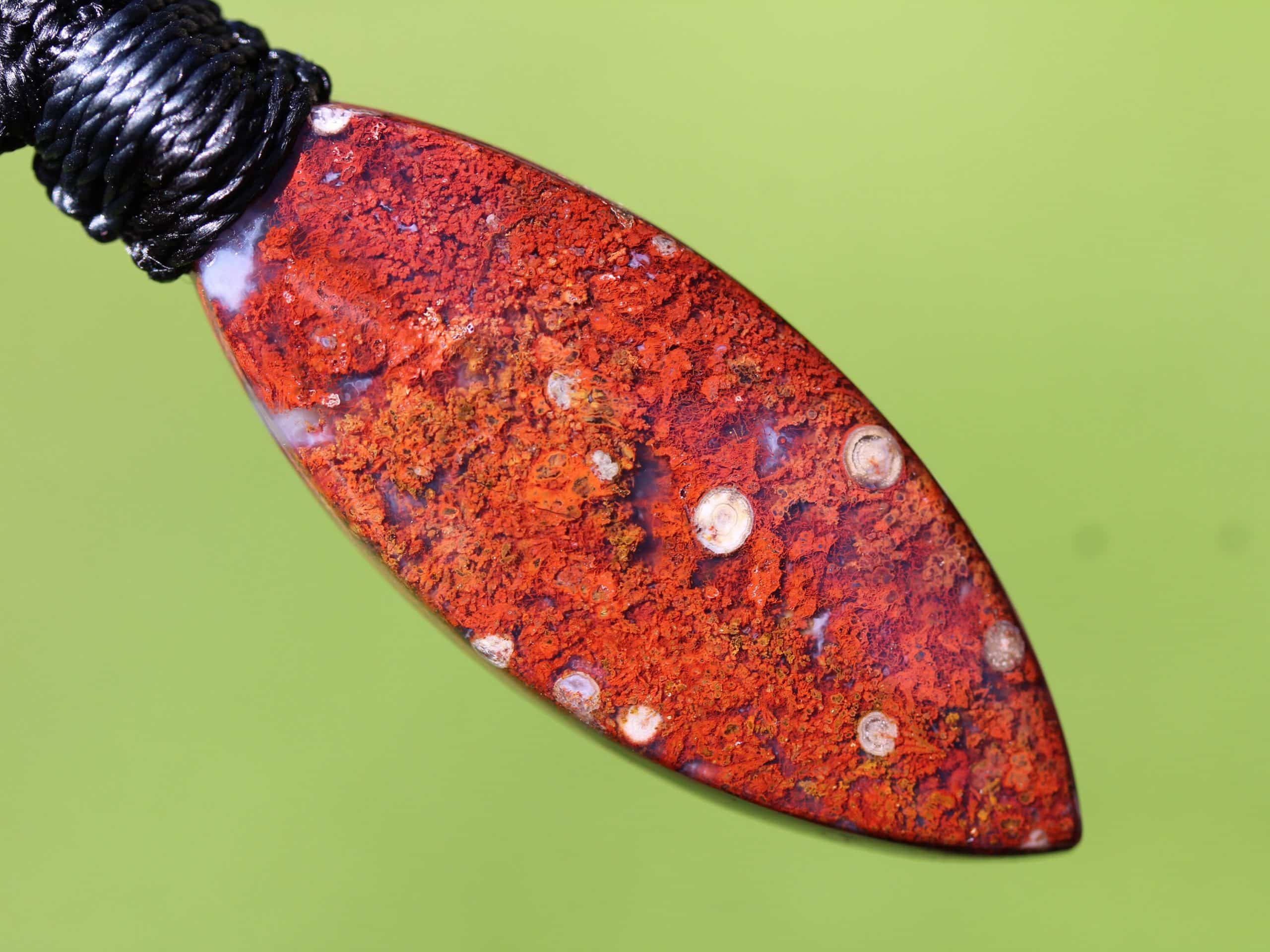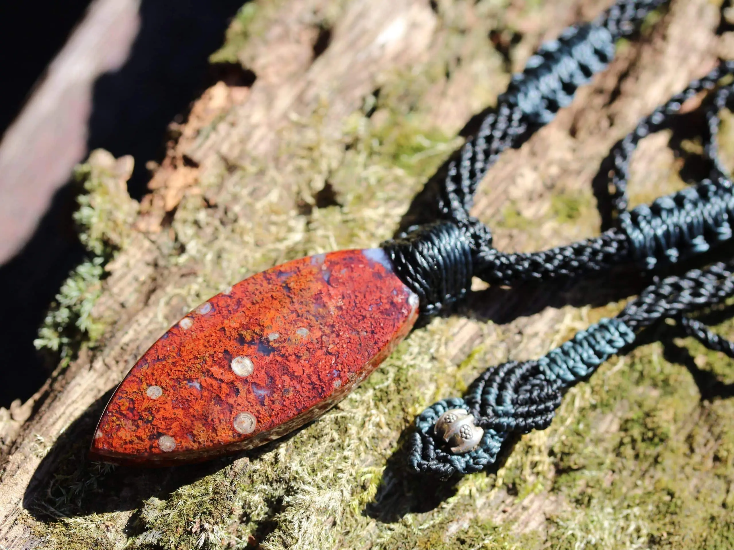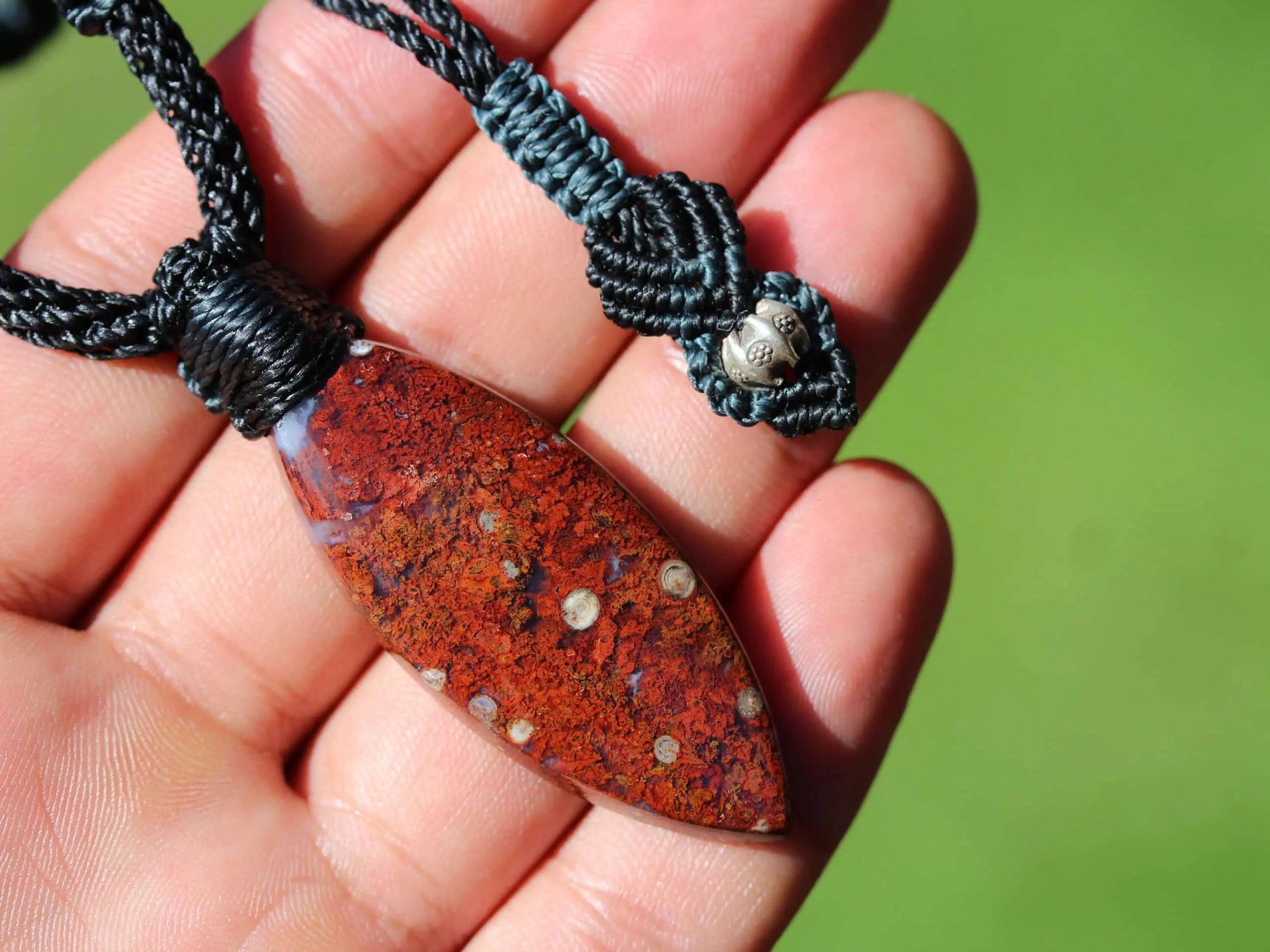 This is a unique and playful red moss agate talisman, handcrafted by us here at Platypus Dreaming in the luscious rainforests of Far North Queensland, Australia. The stone has been cut and polished from raw material and is fair trade and ethically sourced. The moss agate has been sourced from Java Island from a small family business. This talisman features a 1000 pure silver tribal bead that has been hand-cut and chiseled using traditional techniques.