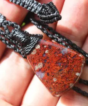 This is a unique and playful red moss agate talisman, handcrafted by us here at Platypus Dreaming in the luscious rainforests of Far North Queensland, Australia. The stone has been cut and polished from raw material and is fair trade and ethically sourced. The moss agate has been sourced from Java Island from a small family business.