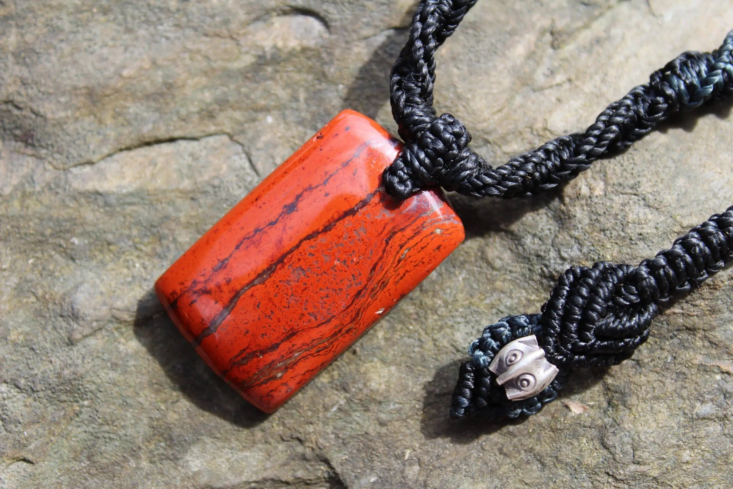This protective Snakeskin Jasper crystal talisman has been handcrafted by us here at Platypus Dreaming in the luscious rainforests of Far North Queensland, Australia. It has been made by artisans with good intention and mission to heal Mother Earth. The stone is from Pilbara region, Western Australia – one of the most remote locations on Earth. This talisman features a 1000 pure silver tribal bead that has been hand-cut and chiseled using traditional techniques.