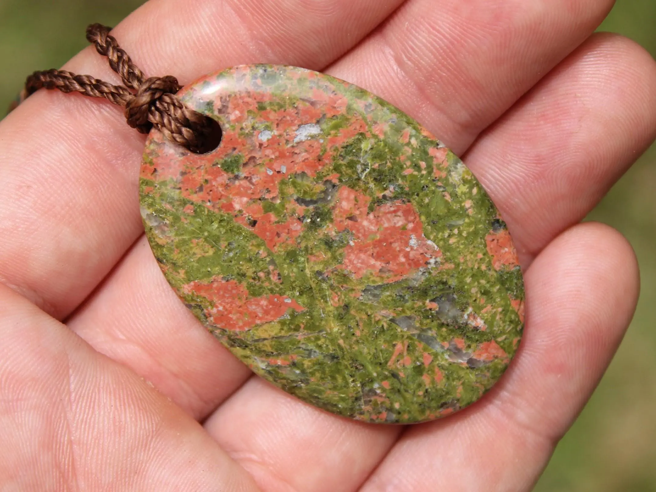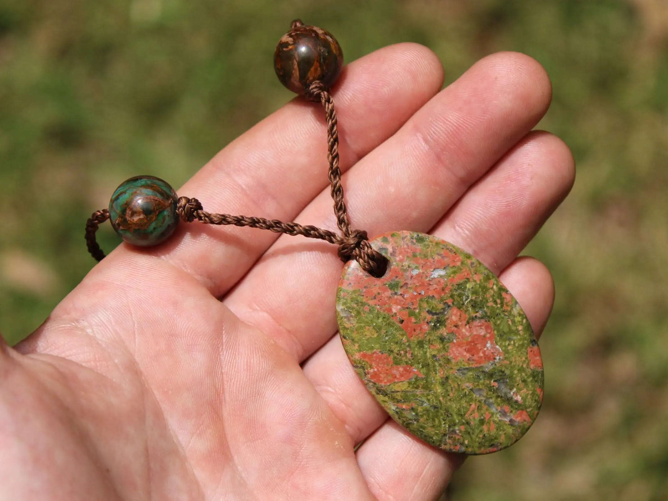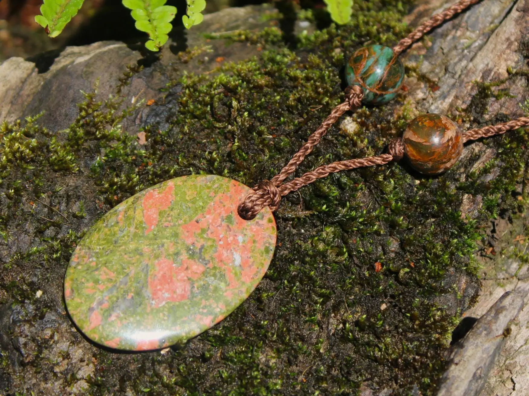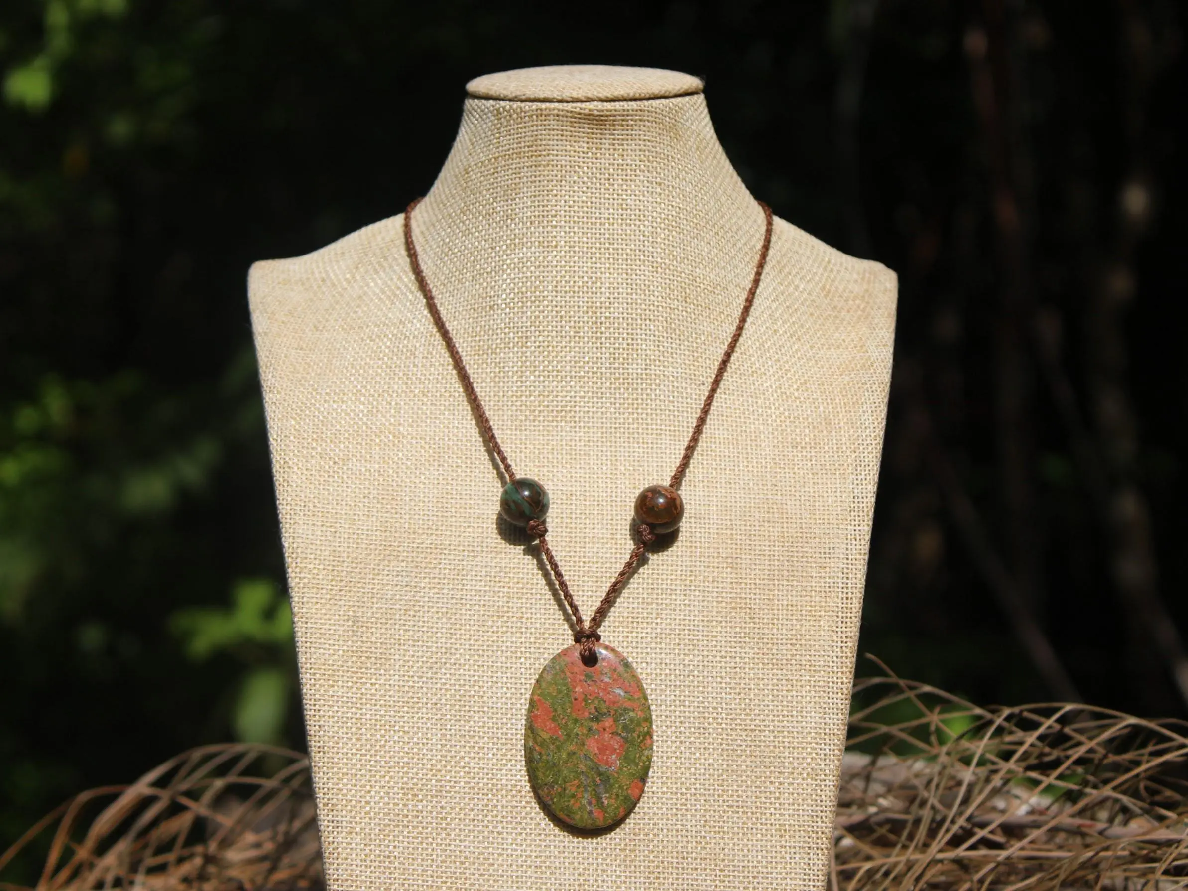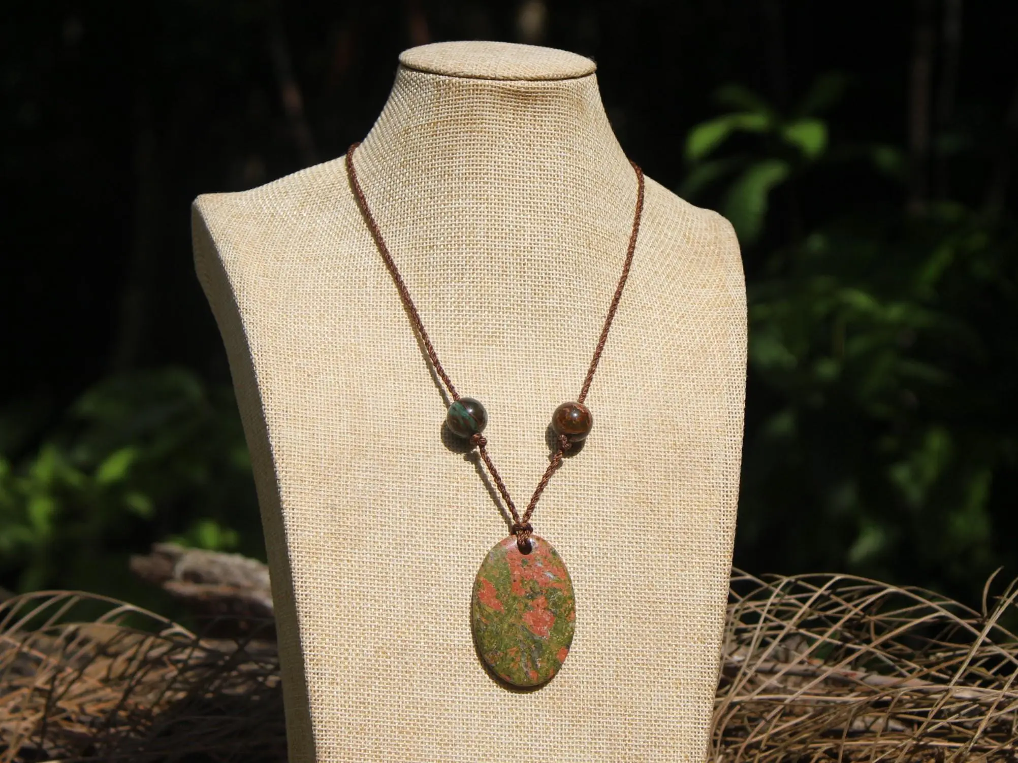 Australian Mookaite , Australian creek and rainforest Jasper, unique tribal necklace talisman, Australian made Macrame Cord, Summer jewelry