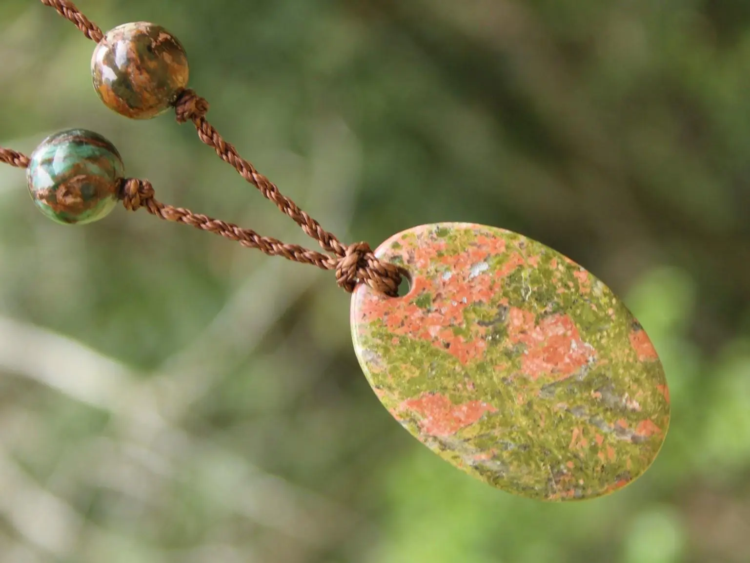 Australian Rainforest Jasper Necklace • Ocean Jasper Eclipse Stone Talisman • Tribal Crystal Pendant • Australian Handmade • Handwoven Tropical Cord