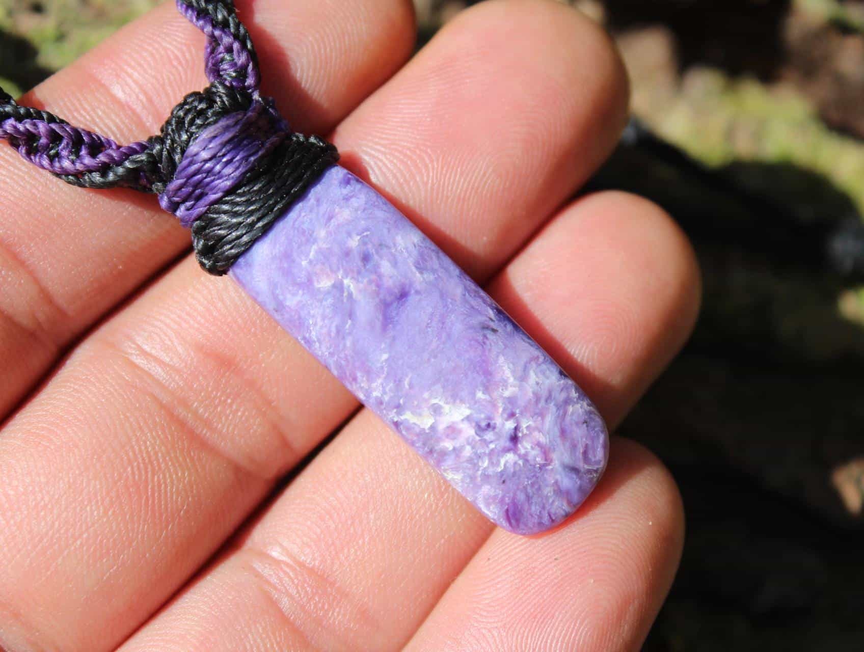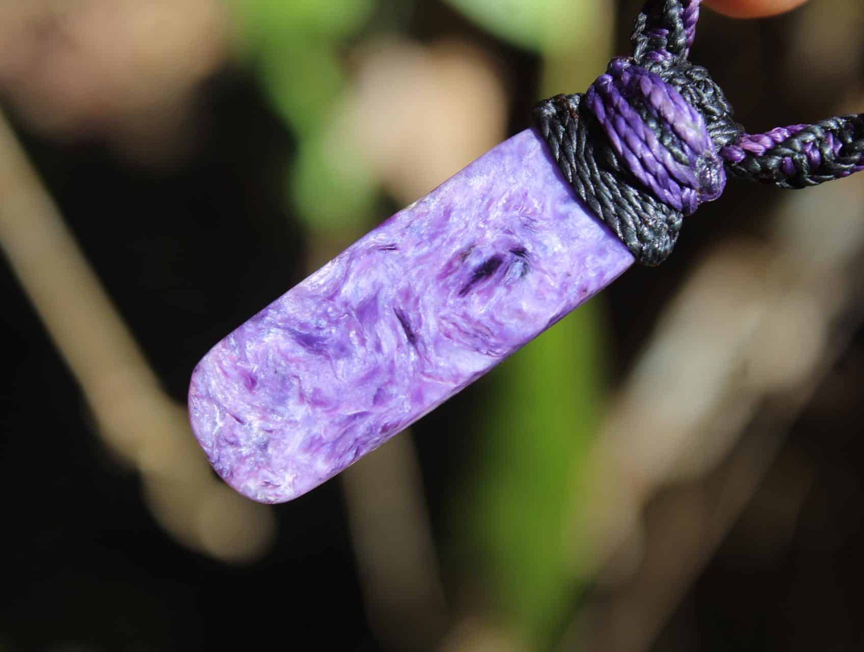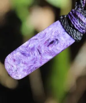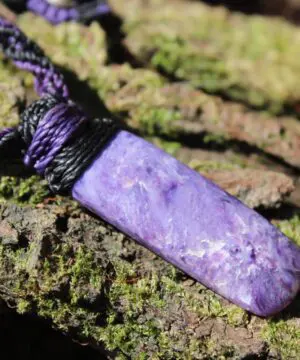 Charoite is called a "Stone of Transformation" and is a stone of power. In particular, it transforms negative emotions such as anger and fear into positive feelings. As part of the transformation process, it allows the release of those negative emotions. Charoite is also a stone of inspiration, bringing enhanced creativity, spiritual growth, and showing new possibilities even in old situations. This is a stone that allows us to see clearly which brings with it enhanced self-esteem and helps release one from victimisation. Charoite can enhance or bring courage, inner strength, and appropriate assertiveness.