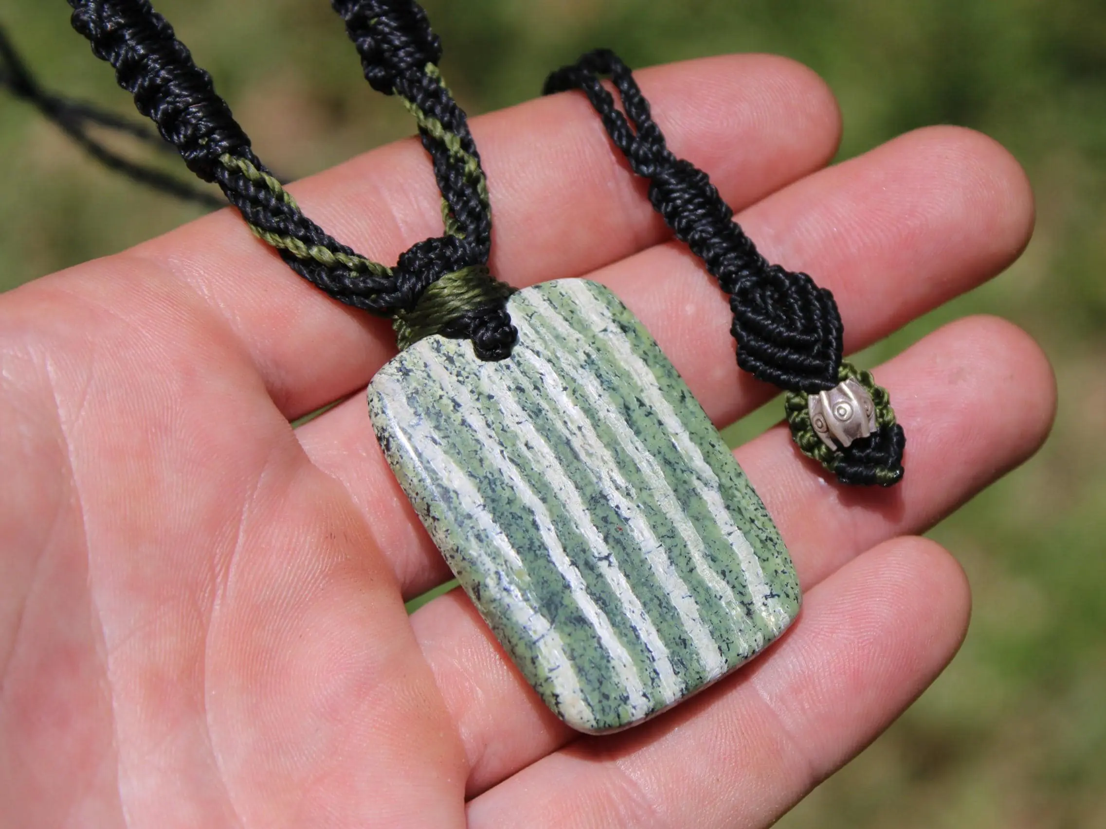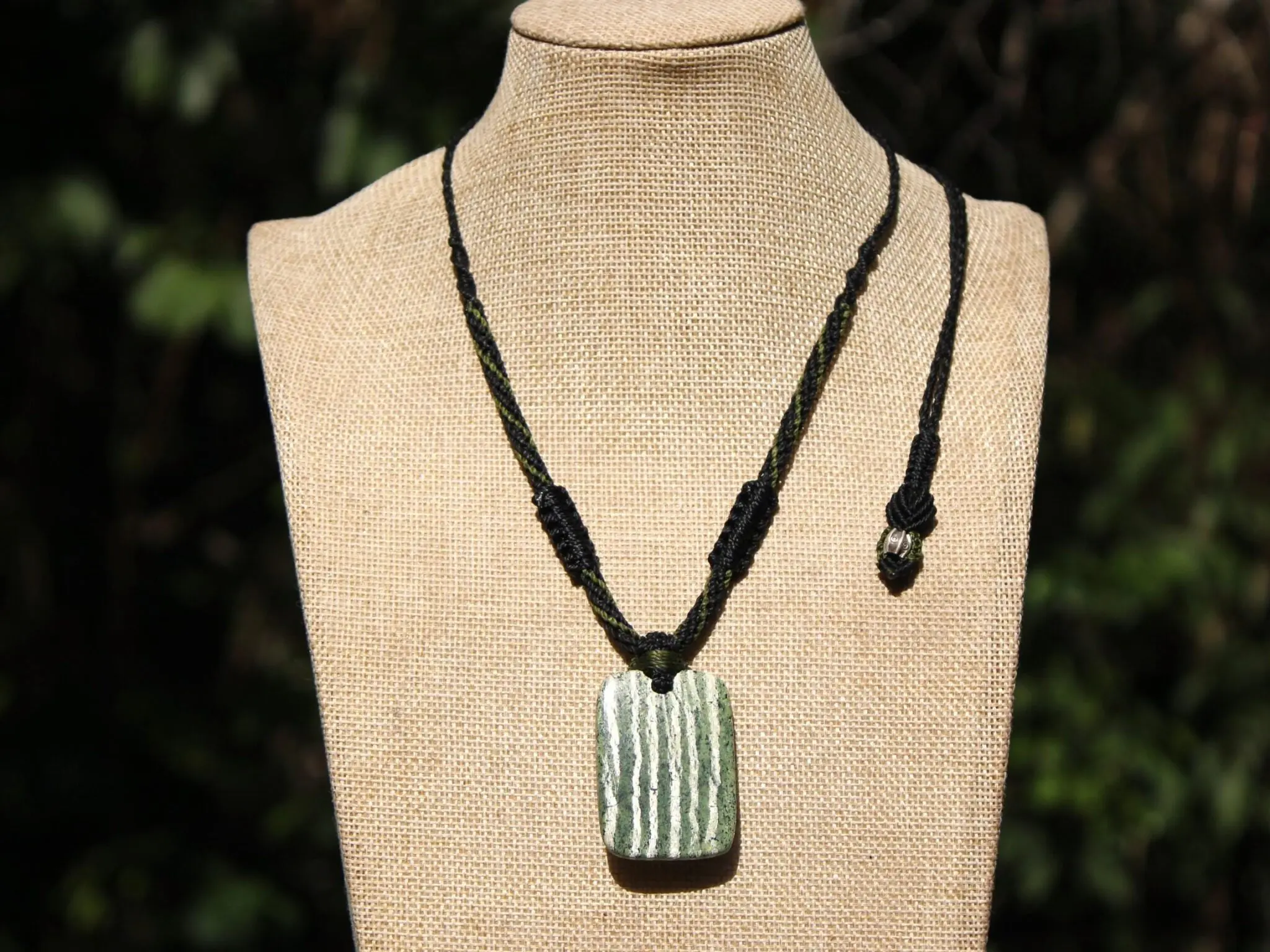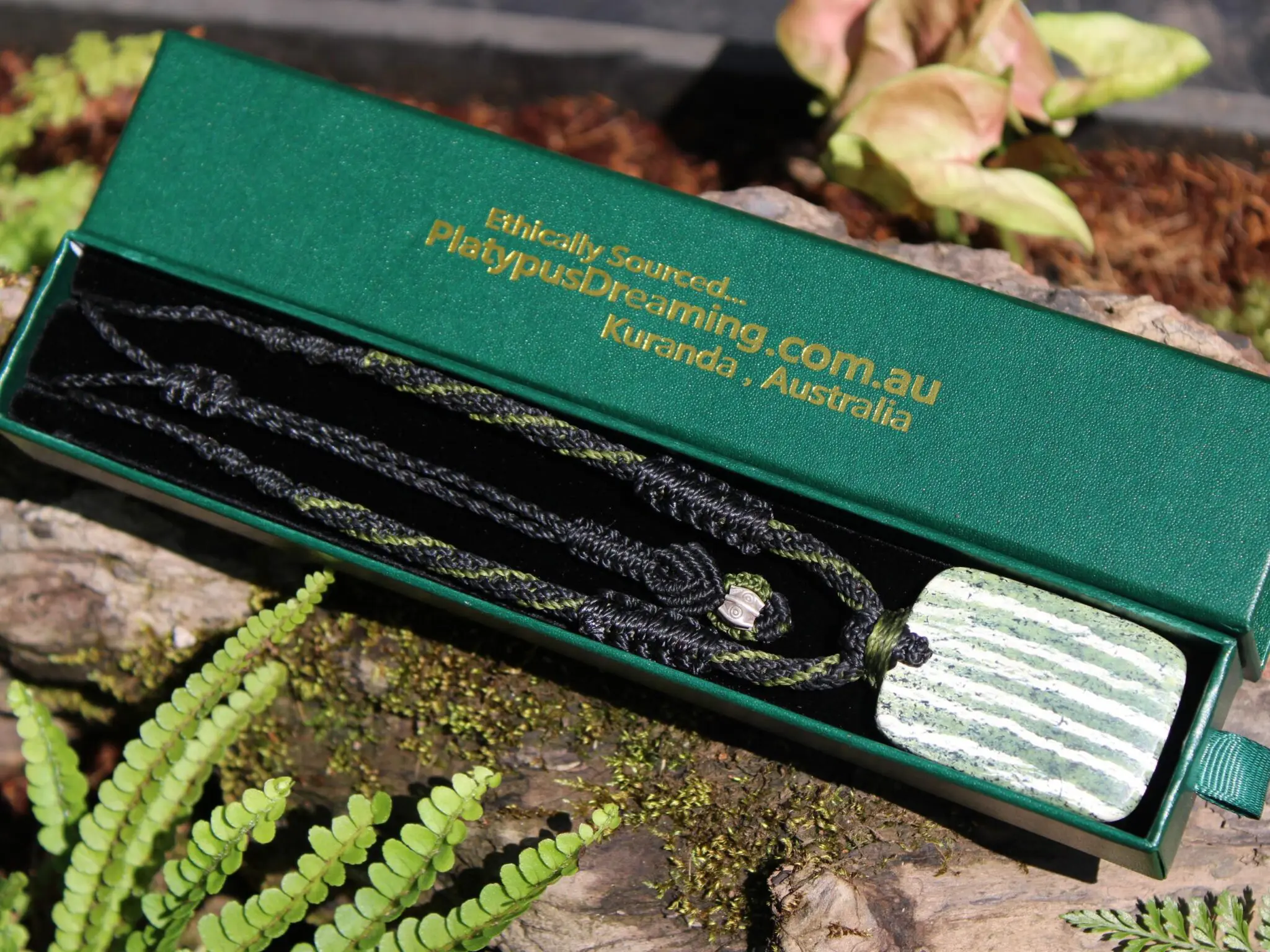noreena jasper necklace, australian made handwoven tropical cord, healing crystal jewelry, natural stone indigenous pendant Galatasaray