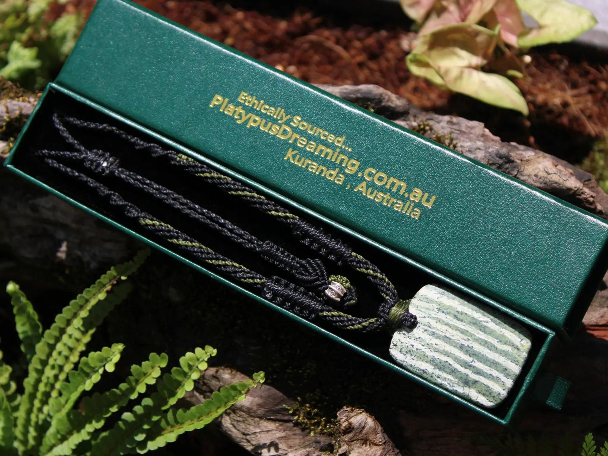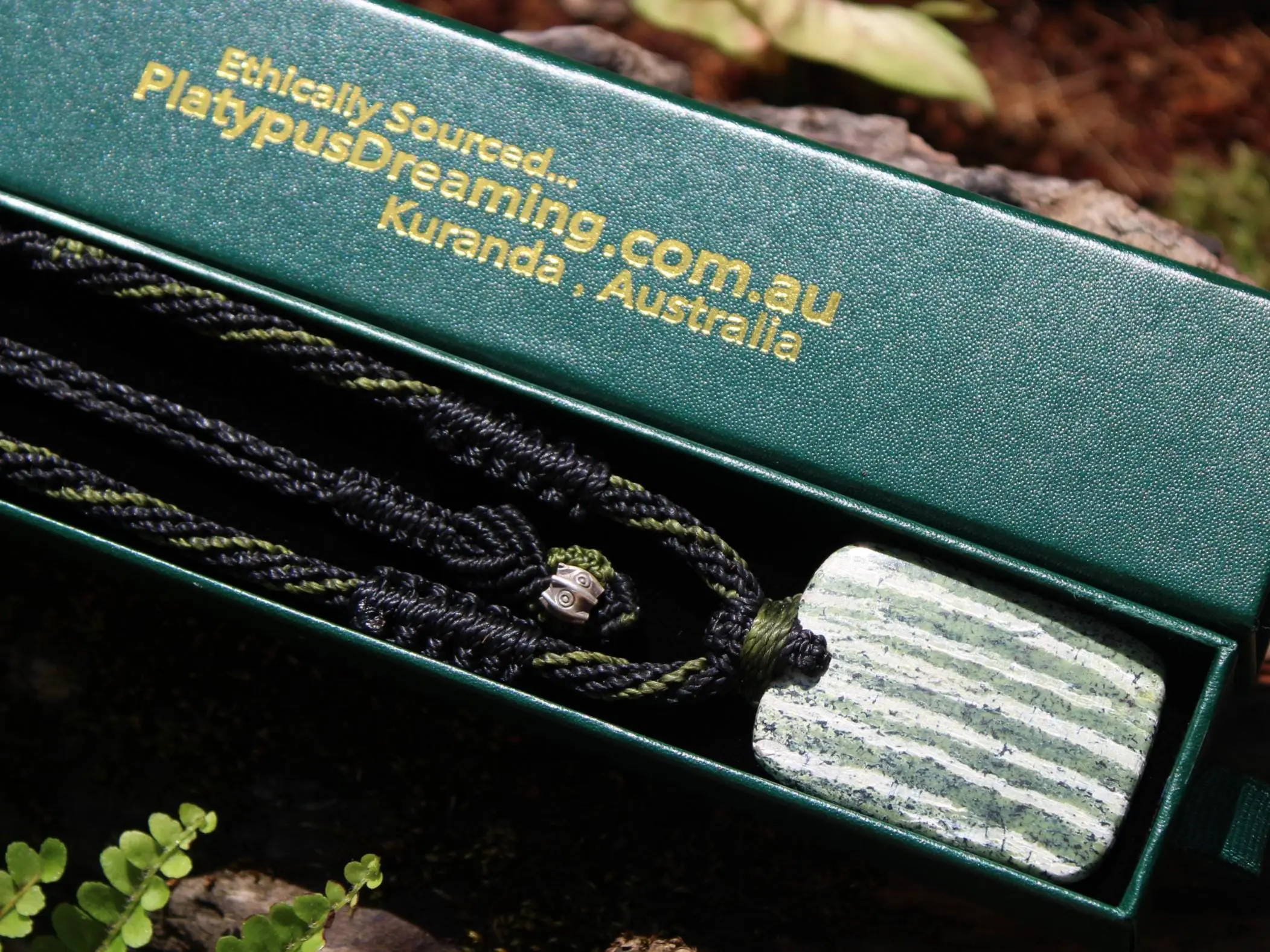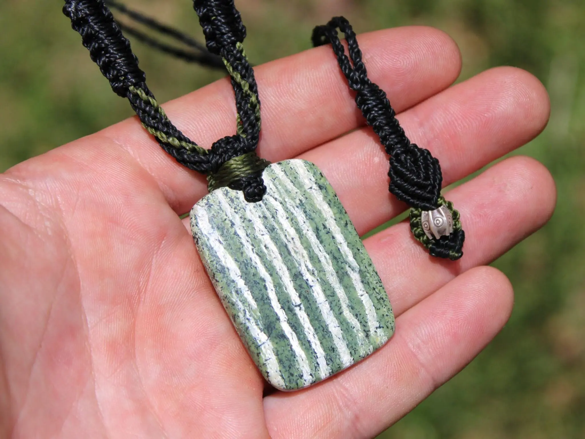 noreena jasper necklace, australian made handwoven tropical cord, healing crystal jewelry, natural stone indigenous pendant Galatasaray