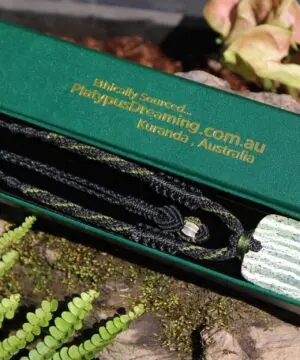 This enchanting double-sided Seraphinite crystal talisman has been handcrafted by us here at Platypus Dreaming, in the lush rainforests of Far North Queensland, Australia.