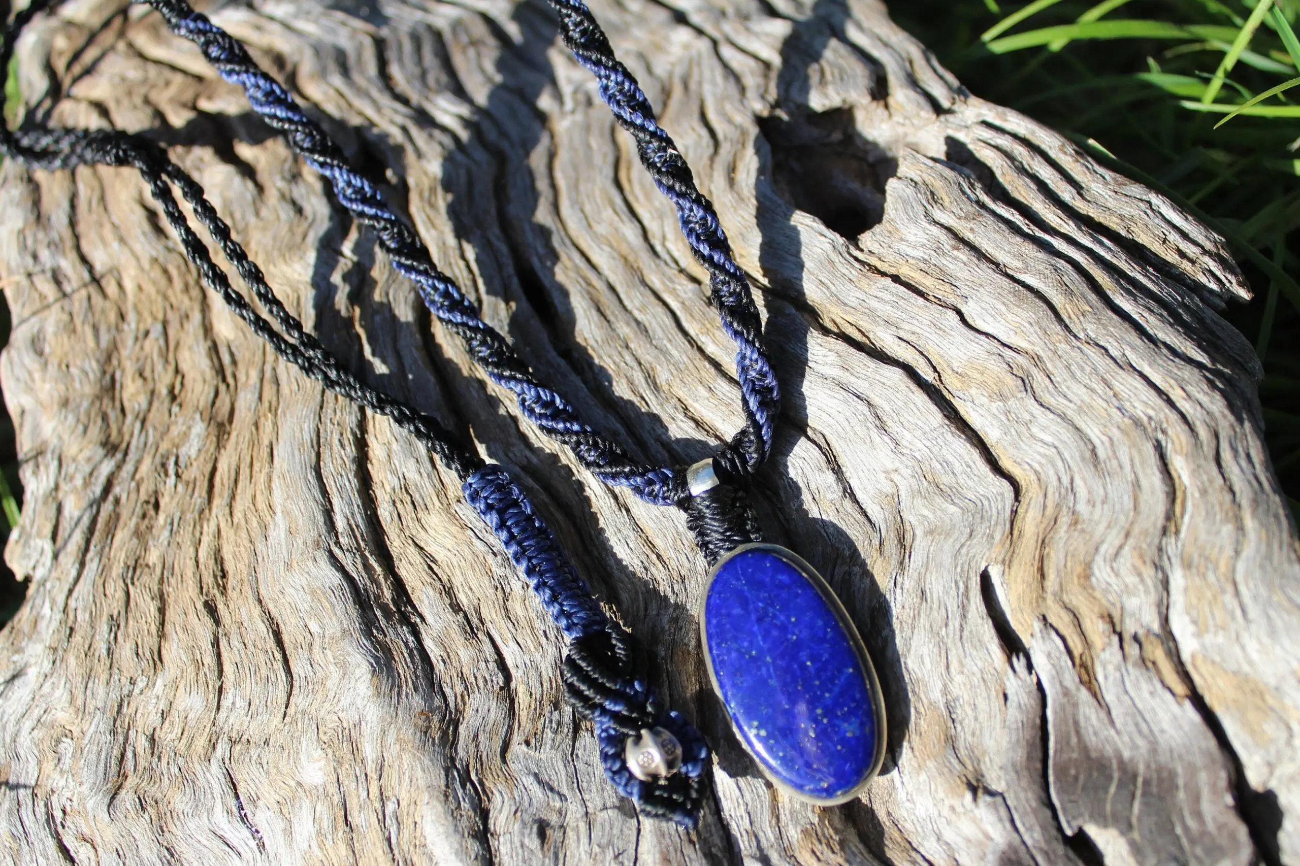 This divine lapiz lazuli crystal talisman has been handcrafted by us here at Platypus Dreaming in the luscious rainforests of Far North Queensland, Australia. It has been hand-set in 925 sterling silver. The stone has a magnificent polish and vibrant sheen. This lapiz also has pyrite inside which gives off the beautiful gold looking colour. The vibrant lapiz has been ethically sourced from a small family business in Afghanistan – which we sourced years ago while travelling. This talisman features a 1000 pure silver tribal bead that has been hand-cut and chiseled using traditional techniques.