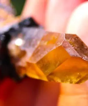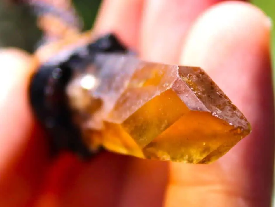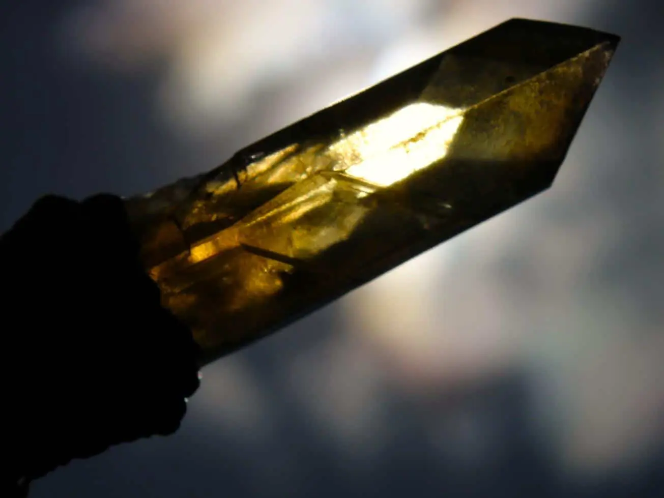 This is a positively vibrant double-sided Smoky citrine specimen talisman. The crystal is a raw specimen, meaning it has not been polished or altered in any way – it is exactly how it was unearthed and it has extra faces. The crystal has a growth mark on one side where it grew together with another crystal, many millions of years ago. The crystal itself is a Laser Wand shape. A Laser is a naturally formed long slender crystal that tapers towards its termination. It has an incredible natural colour, so deep yellow and brown! The rawness of this crystal, as well as the vibrant colour, is what makes it far more valuable than the bulk of citrine available online.