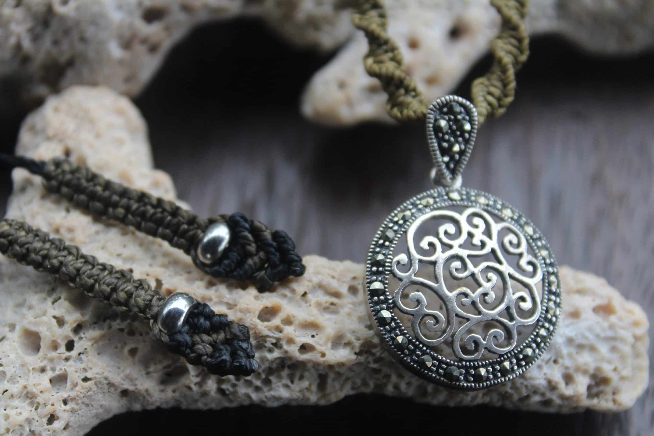 Stunning Celtic Marcasite (Pyrite) Sterling Silver Necklace, Hand Made Adjustable Ancient knots
