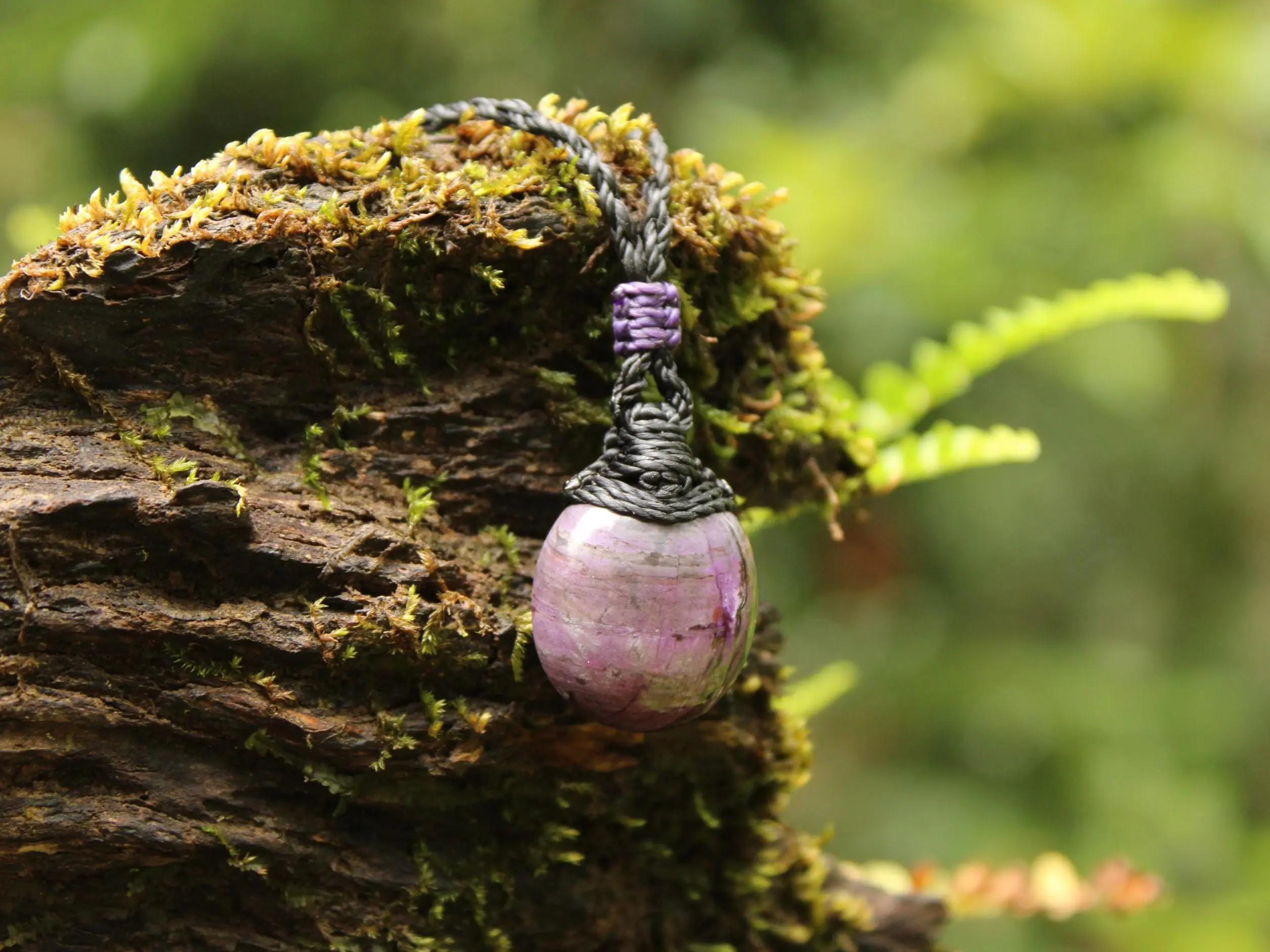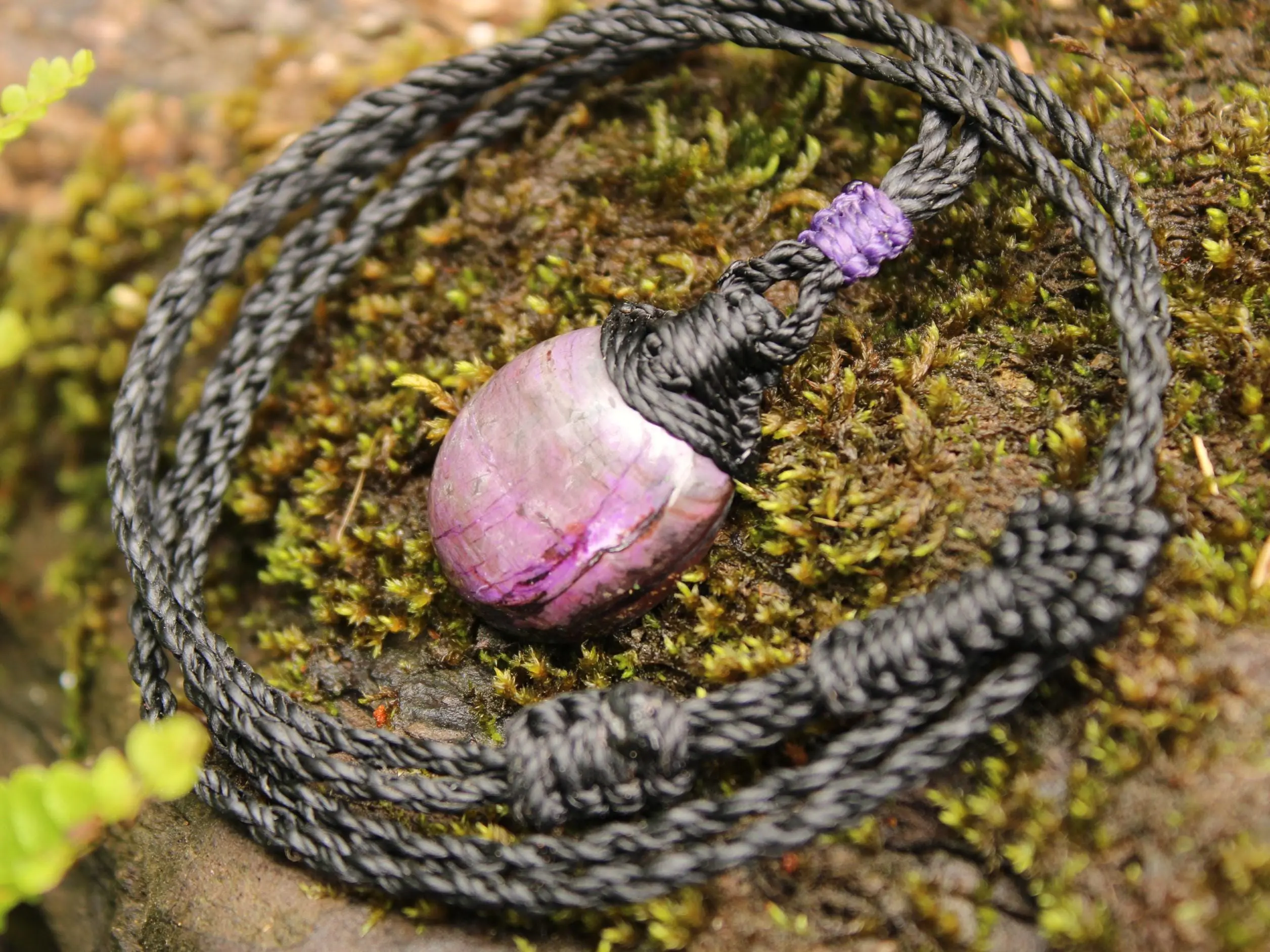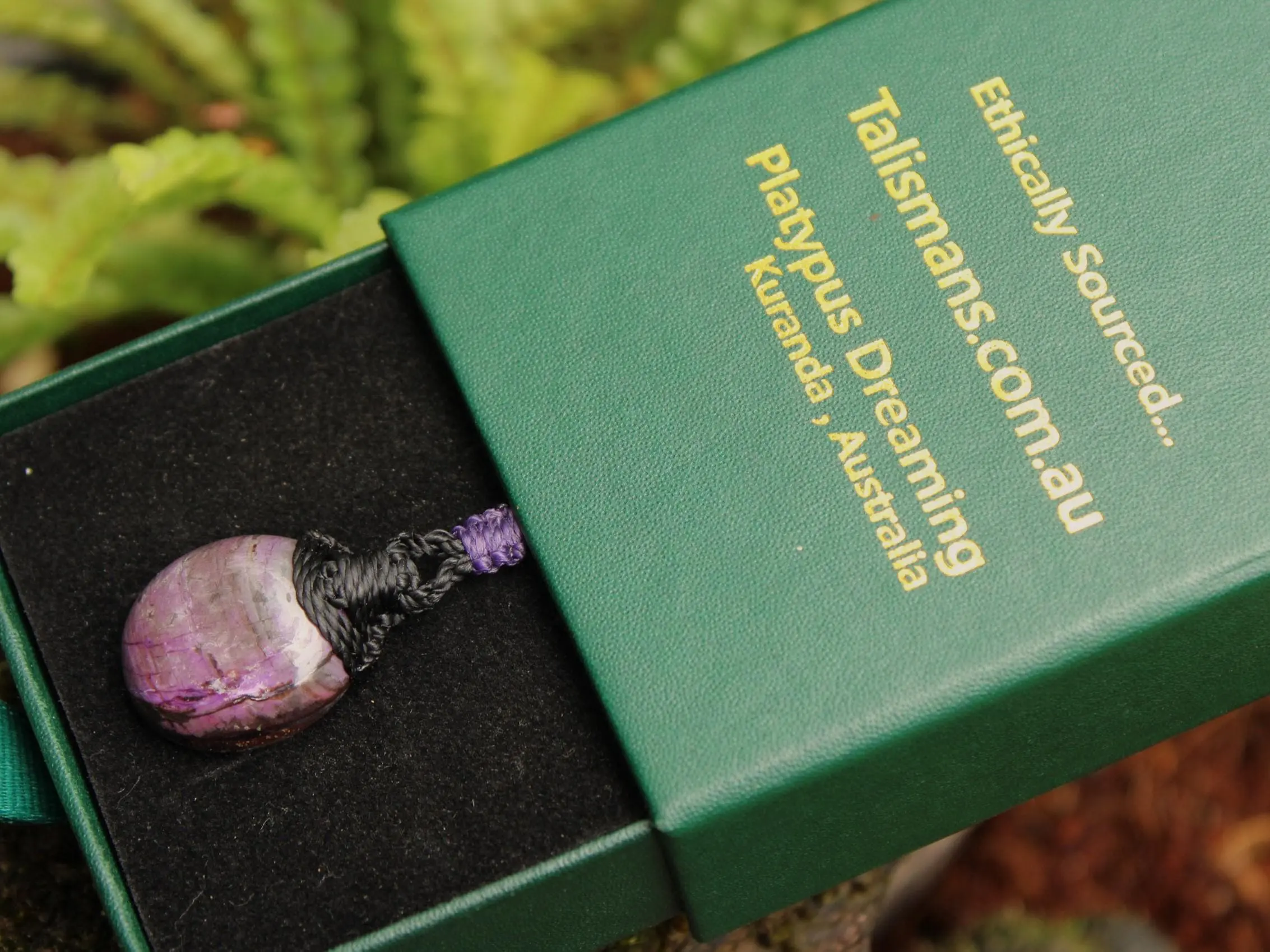 This AAA+ Sugilite crystal pendant has been handcrafted by us here at Platypus Dreaming, in the ancient rainforests of Far North Queensland, Australia — the oldest rainforest on Earth.