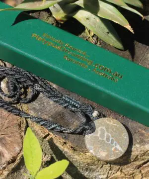 This is a AAA+ quality Elimia Agate crystal talisman with stunning deep colours.. It has been hand polished and handcrafted by artisans here at Platypus Dreaming, in Far North Queensland, Australia. . This talisman also features a 1000 pure silver tribal bead that has been hand-cut and chiseled using traditional techniques.